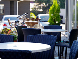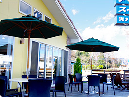 待ち時間はテラスでお飲物でも飲みながら、ごゆっくりお過ごしください。